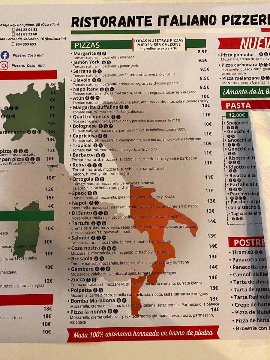 Welcome to Pizzeria Cosa Mia, a delightful culinary gem located in the heart of Castellón, Spain. Renowned for serving some of the best pizzas in the region, this pizzeria is a must-visit for pizza lovers and newcomers alike. The positive reviews highlight not only the exceptional taste of the pizzas but also the warm and attentive service provided by the staff.